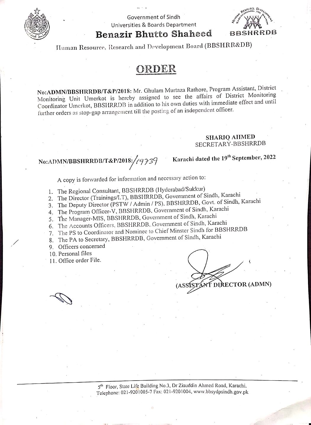 . Notifiction No. 19739 Issued on : 19-09-2022 | View