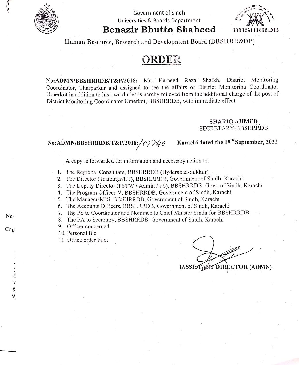 . Notifiction No. 19742 Issued on : 19-09-2022 | View