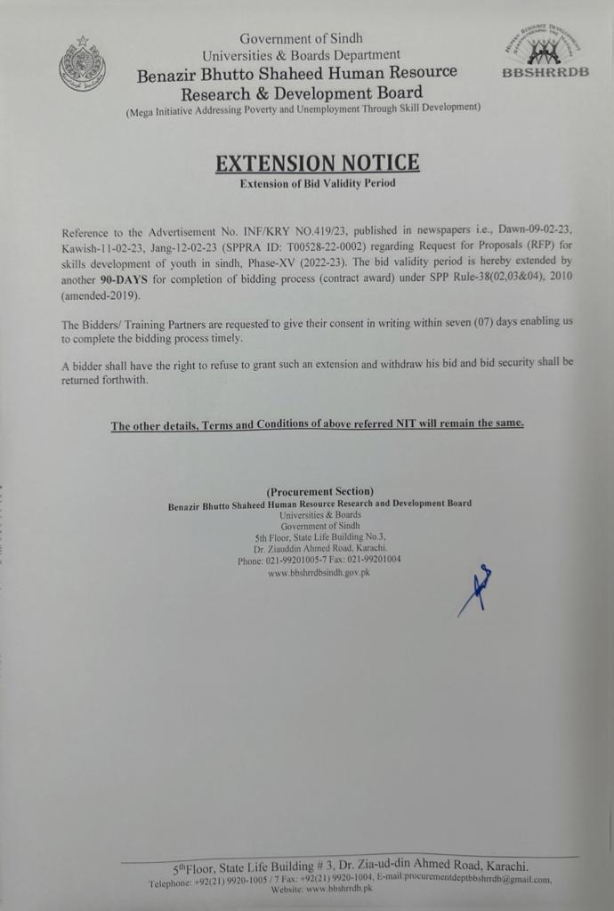 . Notificaiton for Extention in Phase XV Training, Issued on : 24-05-2023 | View