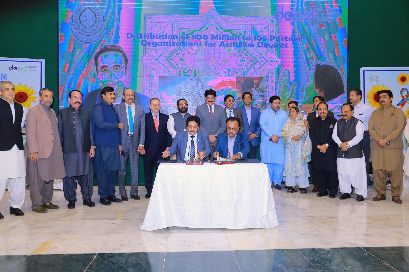 A Memorandum of Understanding (MoU) has been formally signed between the Benazir Bhutto Shaheed Human Resource Research and Development Board and the Department of Empowerment of Persons with Disabilities (DEPD) to strengthen collaboration in promoting disability empowerment initiatives across the province.The agreement was signed by Secretary of the Board, Engr. Munawar Ali Mithani, and Mr. Aitbar Ali Buriro. The signing ceremony was witnessed by Honourable Chief Minister Syed Murad Ali Shah, along with members of the provincial cabinet and consultants. This partnership reflects the government’s strong commitment to inclusive development, aiming to enhance opportunities, accessibility, and support systems for persons with disabilities in Sindh.