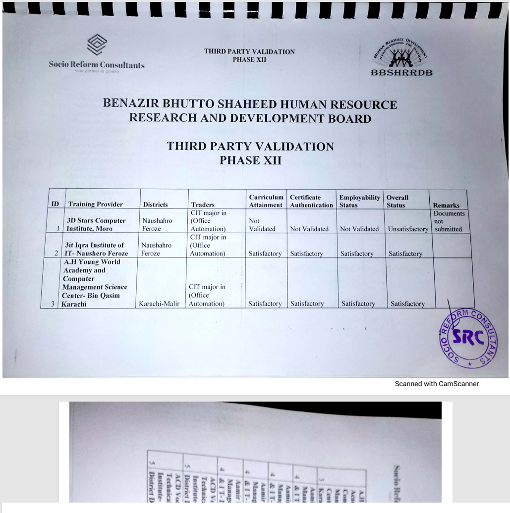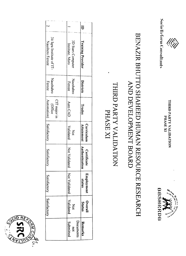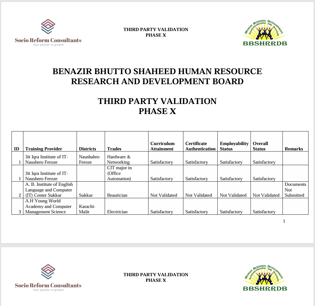 ٽئين پارٽي جي تصديق رپورٽون پبلڪ سيڪٽر ٽريننگ ونگ